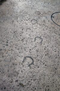 アトラクションが終わると王国の馬マキシマムの足跡🐾🐾床さえも目が離せません🐾🐾